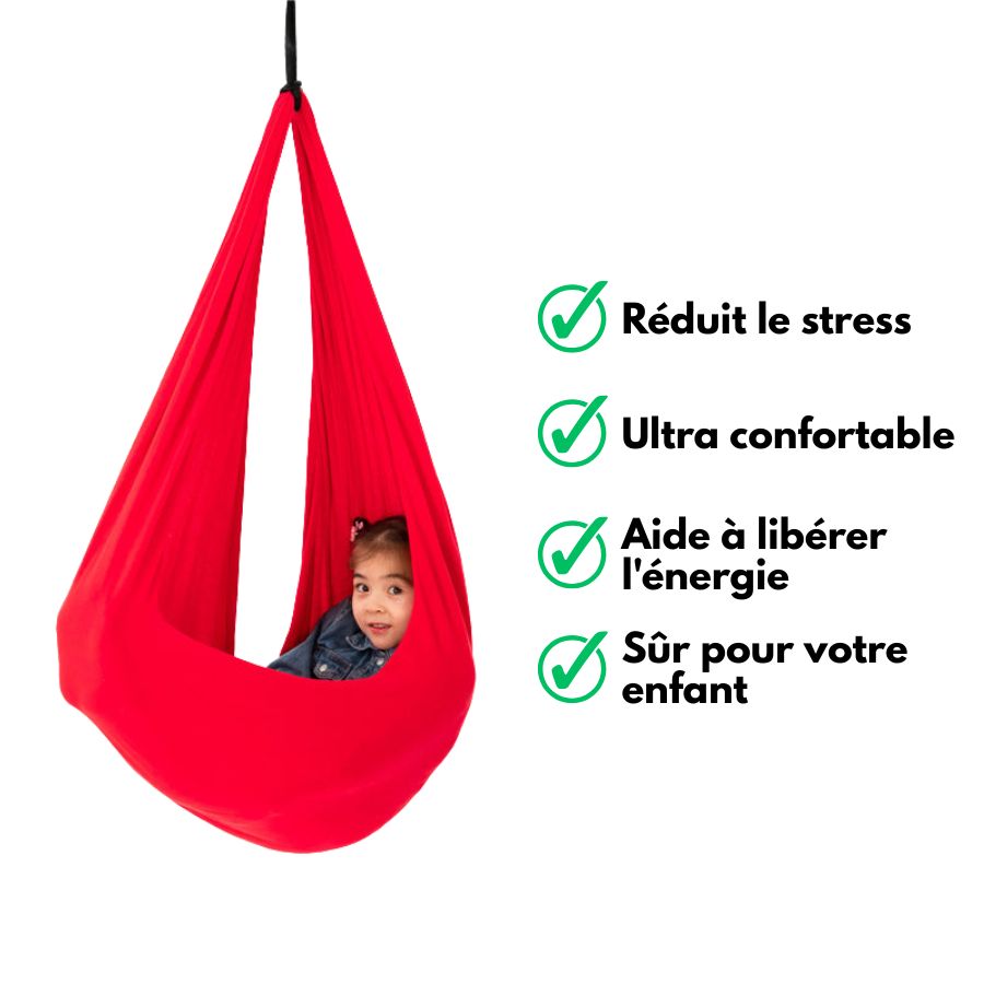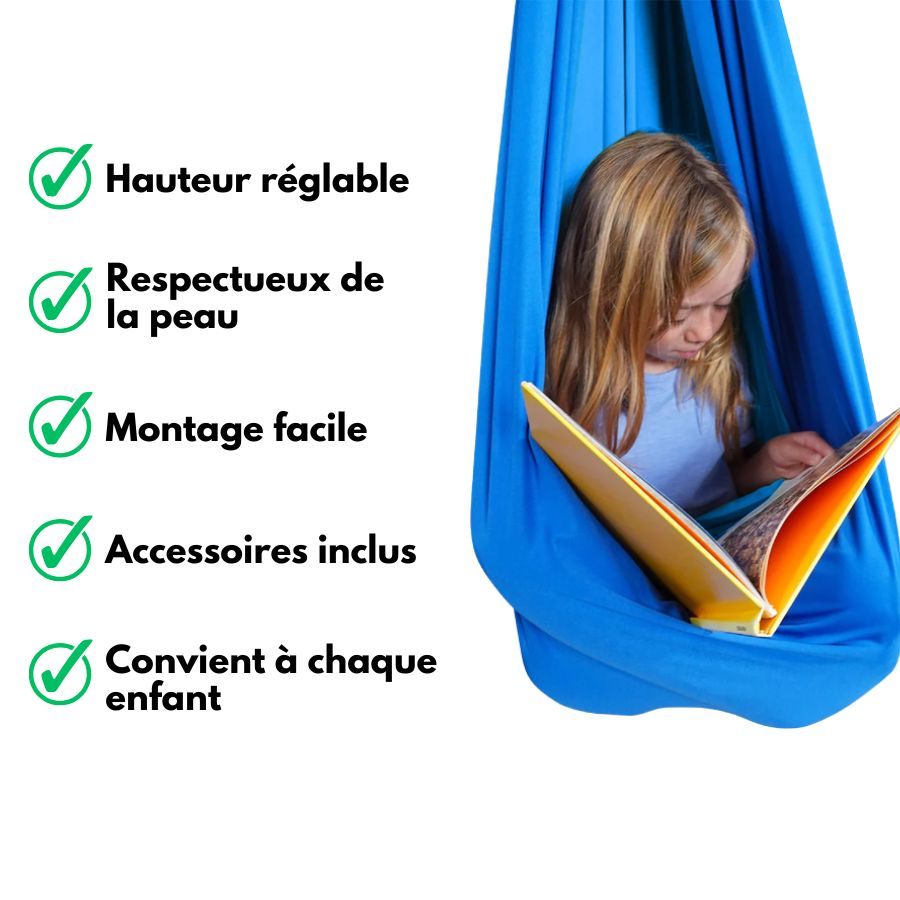 Avec la balançoire thérapeutique de Mimelys™, vous pouvez aider votre enfant à éviter les crises émotionnelles, à canaliser son besoin de mouvement et à se détendre. En même temps, elle peut améliorer la concentration et l’humeur de votre enfant, contribuant également à un endormissement plus facile.