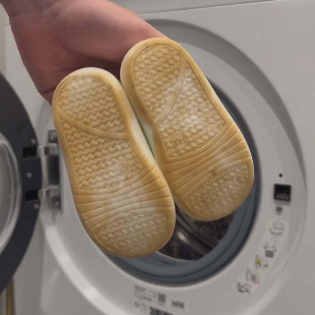Nos chaussures sont entièrement lavables en machine ! Cependant, nous vous recommandons d'utiliser un sac à linge pendant le lavage et de sécher les chaussures à l'air libre uniquement.